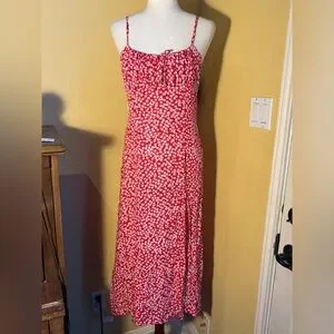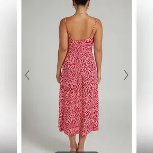 Showpo Willa Red Floral cottage inspired Midi Dress with Slit. Size 6. NWT