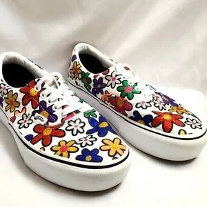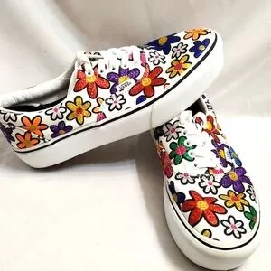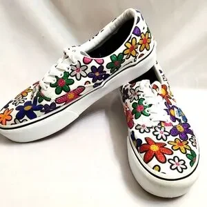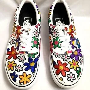 Vans Era Flower Multicolored Glitter Floral Platform Sneakers (Uni M 8, W 9.5)
