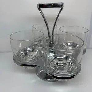 MCM Vintage Barware 1960s Chrome Caddy & Rotating Lazy Susan Set of 4 Glasses