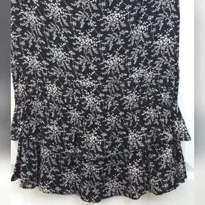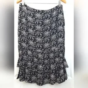 NWOT Comptoir des Cotonniers Black White Floral Ruffle Tier Midi Skirt M