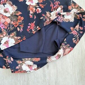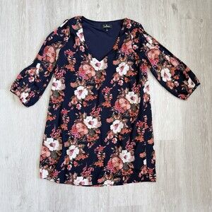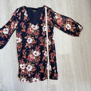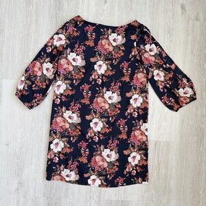 Lulus Dress V-Neck Cold Shoulder Shifting Dears Navy Blue Floral 3/4 Sleeve S