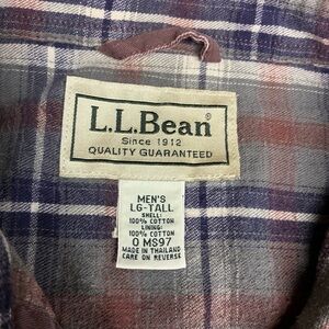 Casual button-down shirt by L.L. Bean. Deep purple color. Features two chest pockets. Ideal for relaxed outings. One small flaw shown