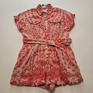FARM Rio Jaipur Red Romper Short sleeves Collared Front button Size L