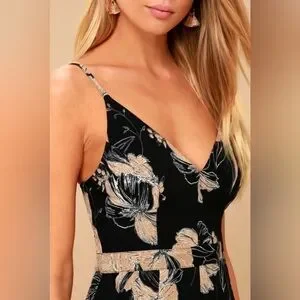 Lulus NWT “Darling Daylily” Black Floral High-Low Maxi Dress. Size Medium.