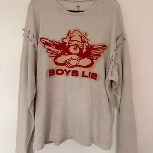 The soft light grey fabric of this thermal longsleeve is contrasted by a bold cherub patch and silver piercing accents along the sleeves for an effortlessly cool look.