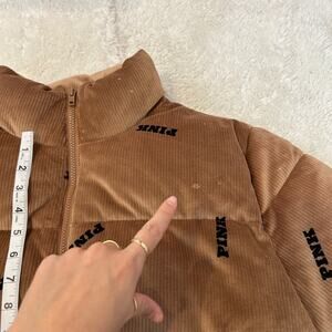 VS Pink Womens Rib Velour Crop Puffer Jacket Color Caramel Sz M Preppy Casual