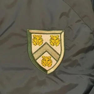This is a Charles River jacket made specifically for Princeton University's Rockefeller College. Embroidered with the Rockefeller College crest in green and gold. Not a generic Princeton piece; this was made for one of Princeton's residential colleges and is hard to find.