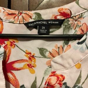 Zac & Rachel Floral Blouse - Cream with Red and Green Accents