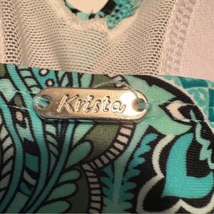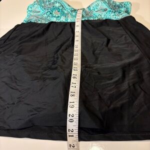 Black and turquoise Paisley OnePiece Swimsuit with attached skirt like new Sz 16