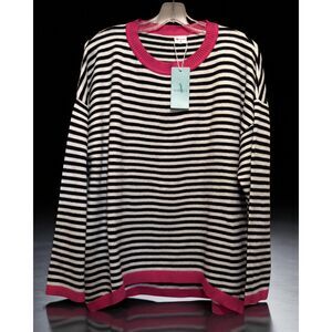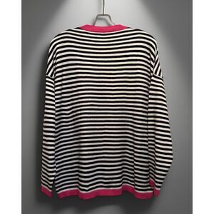 NWT Wiholl Women's Striped Crewneck Pullover Cardigan Black/White/Pink Size S
