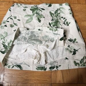 Abercrombie & Fitch Small Linen Blend Skirt Skort Green White Floral Mini
