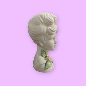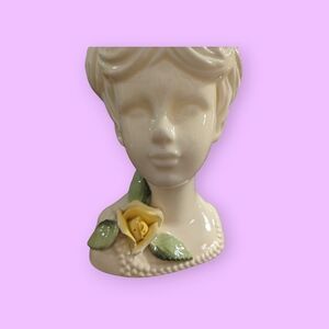 Charming vintage ceramic lady bust/head featuring a delicate yellow rose accent. Perfect for home decor. In excellent vintage condition with some minor flaws. Some minor crazing around the rim. Please see photos for the condition as well.