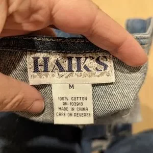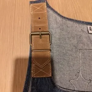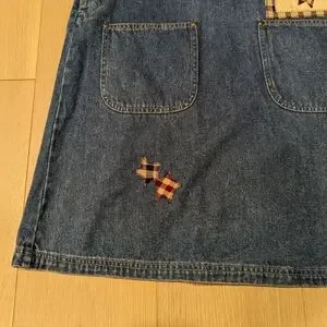 Charming denim pinafore dress featuring colorful patchwork designs. Perfect for a playful look.