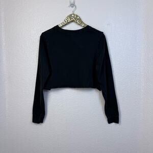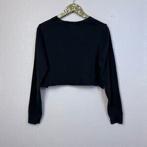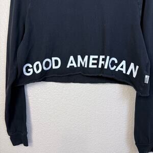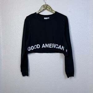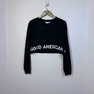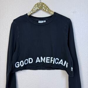 Details: Chic black crop top with long sleeves. Features bold 'Good American' logo. As seen on TV on Keeping up with the Kardashians. Good American size 2 = M. Excellent Preowned Condition.
