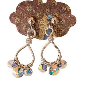NEW Pierced Silver Three Crystal Twisted Wire Drop Earrings