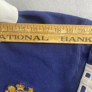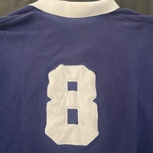 Vintage Polo Ralph Lauren Rugby Shirt Mens L Long Sleeve Blue #8 Crest Preppy. Flaw (Small Hole Rear Left Sleeve As Shown In Last Photo).