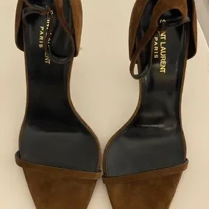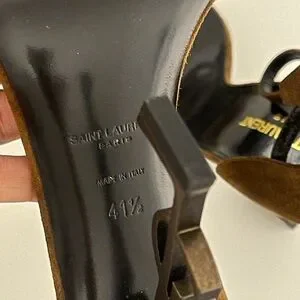 Saint Laurent Opyum Suede Logo Heel Sandals Brown 41.5 YSL Monogram Bronze