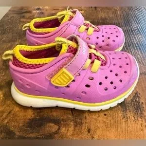 London Fog Mud Puppies Water Play Shoes Pink and Yellow Size 5