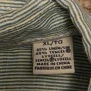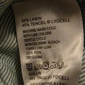 Material: 55% linen, 45% Tencel lyocell (as indicated on tags)