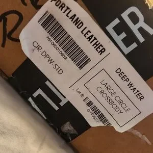 Portland Leather Goods Circle Crossbody bag in a deep blue, likely "Deep Water" or "Indigo Blue". New original packaging, never used. Just to small for my taste.