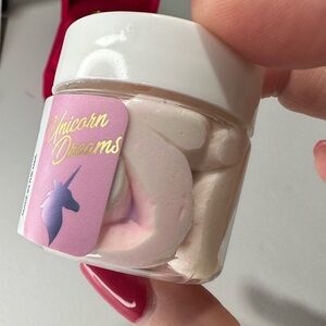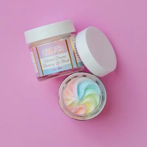 AMNH Unicorn Dreams Plumping Lip Mask with a colorful swirl design. Perfect for lip care.
