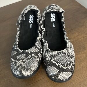 SAS Womens Radiant Ballet Flats 11.5 N Snakeskin Black Gray Comfort Shoes USA
