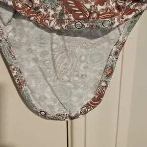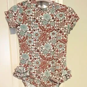 Kate quinn 12-18m ruffle side hips peacock print onesie bamboo *
