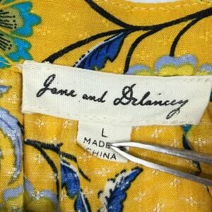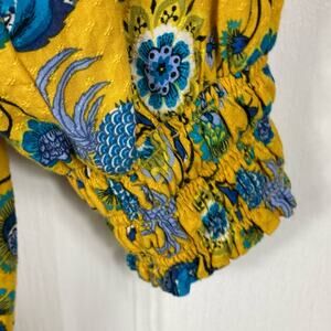 NWOT JANE + DELANCEY Top L Floral Pineapple Swiss Dot Balloon Long Sleeve Yellow
