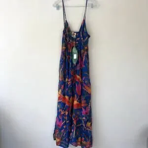 Farm Rio X Anthropologie Cover Up Macaw Party Blue Beaded Ties Dress Multicolor Size L