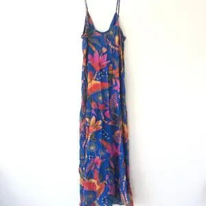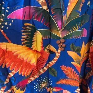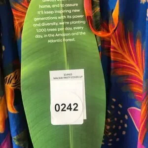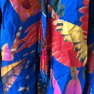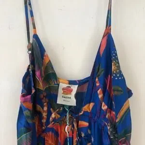 Farm Rio Cover Up Macaw Party Blue Beaded Ties Dress Multicolor Size L