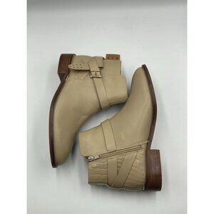 NWT Crevo Women's Beige Leather Strap Buckle Design Ankle Boots Size 8.5 2973