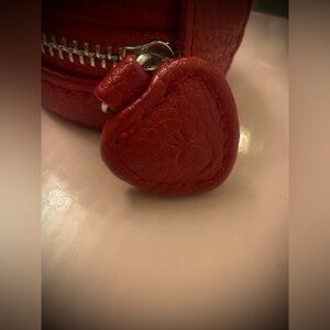 Elegant heart-shaped case by Pandora. Crafted in rich red leather with a zip-around closure and velvet inside. Ideal for bracelets or small treasures.