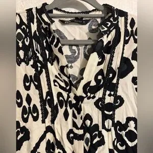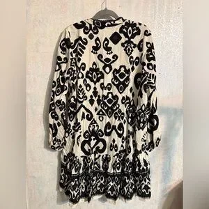 Zara Monochrome Patterned, Cottagecore, Mini, Ruffled, Dress, Sz XS
