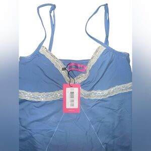 Stylish blue split top cami with cream lace accents. Comfortable and chic. Size XS. NWT.