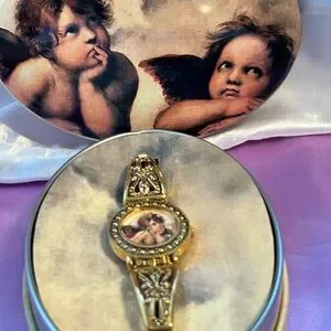 Elegant women's watch featuring a gold angel motif. Perfect for adding a touch of sophistication to any outfit.