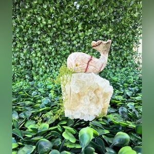This is a one-of-a-kind, handcrafted piece, created by combining natural stone elements into a small visual story. A soapstone whale is gently sitting on a clear quartz cluster, symbolizing depth, movement, and clarity rising from within.