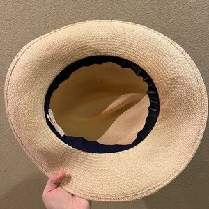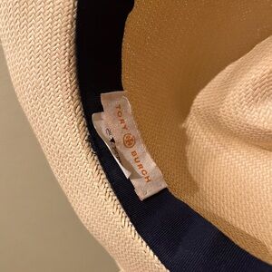 Stylish cream hat featuring a green and black band. Elegant Tory Burch design with signature logo detail.#reposhing - never worn on my end, it’s a little to tight with my hair