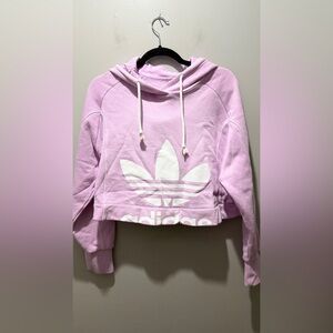 Trendy lavender cropped hoodie with iconic Adidas logo. Ideal for everyday style.