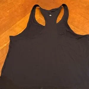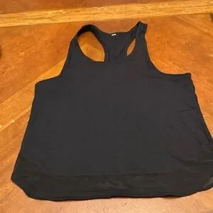 Sleek black tank top. Racerback design. Perfect for workouts.
