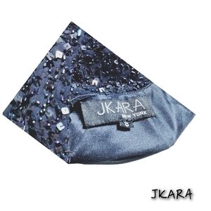 JKARA New York Blue Sequin Maxi Dress Draped Cowl Neck | Formal Evening | Sz 8