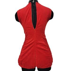 Vintage Corduroy Leotard Red Homemade Romper Majorette Costume Bodysuit Tank XXS