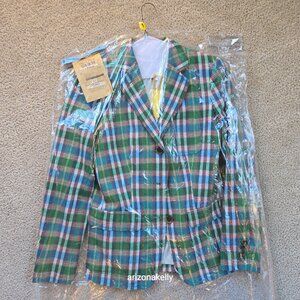 J. Crew Rhodes Blazer Linen Cotton Green Plaid Size 2