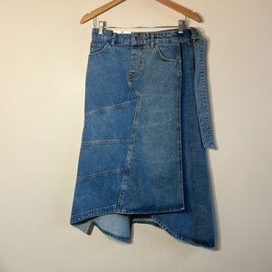 Zara The Hybrid blue asymmetrical denim skirt size small new wrap