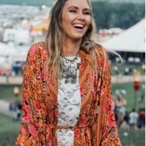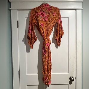 Iconic Spell & the Gypsy Collective Amber Orange Babushka Kimono Duster with belt.
