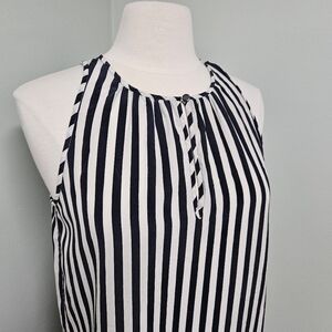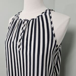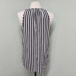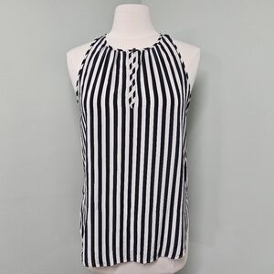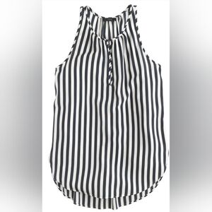 J. Crew Carousel Button Vertical Stripe Sillk Tank Blouse Navy Black White