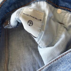 Trendy and flattering Whetherly “Brandon” High Rise Ankle Straight Leg Jeans in a lightly distressed wash.