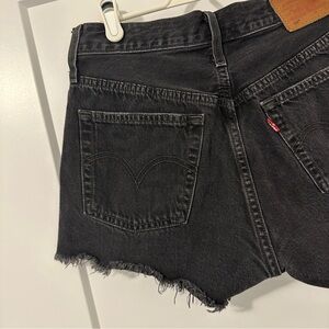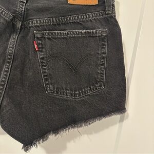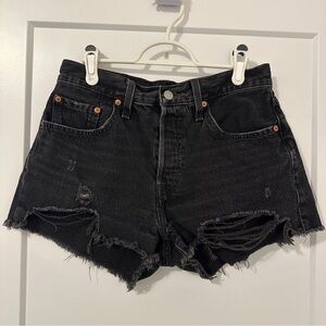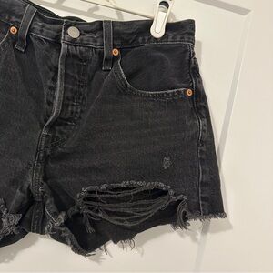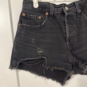 Levi’s 501’s Black High- Rise Denim Cutoff Shorts Distressed Hem Size 27 Women’s