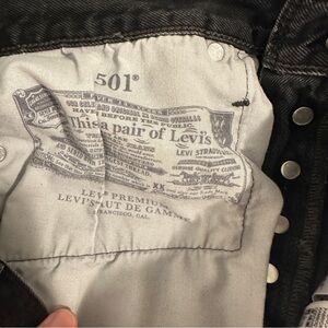 Levi’s 501’s Women’s ladies size 27 waist Black denim cutoff shorts High rise, distressed frayed hem Button fly In Very Good Used Condition Approx measurements: Waist: 15” Rise: 10” Casual Everyday Comfy Summer