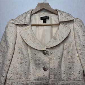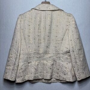 John Meyer Collection Metallic Jacquard Peplum Blazer Jacket Size 12 Ivory Gold