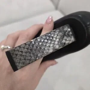 The standout feature is the high block heel finished in a grey-and-black textured snakeskin effect, adding contrast and a fashion-forward edge while remaining stable and wearable.